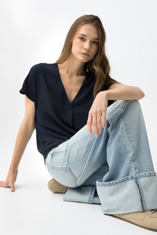Blusa escote en pico azul Tiffosi