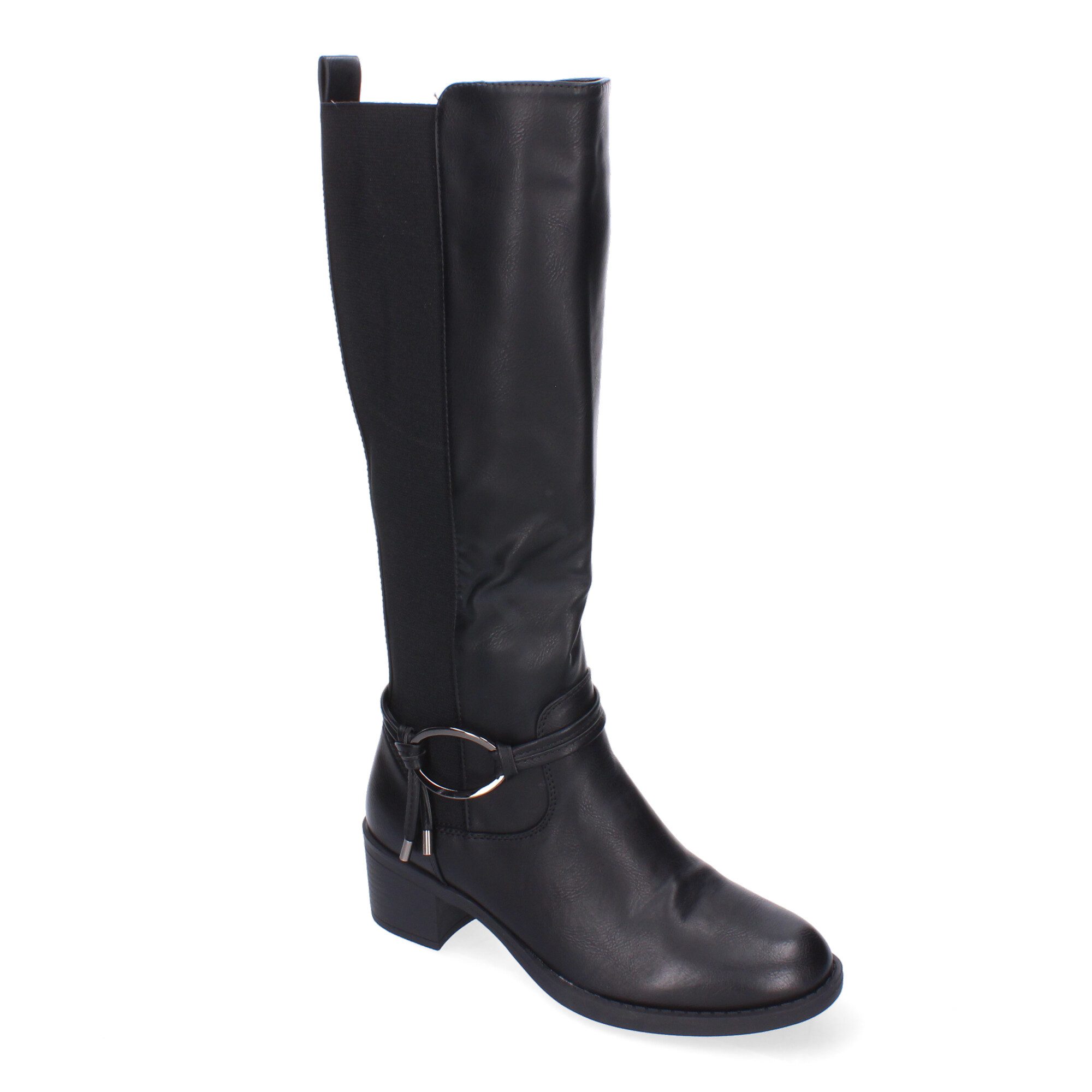 Botas de Tac�n para Mujer Comodas y Elegantes Detalle de Hebilla Puntera Redonda y Cierre de Cremallera Lateral.