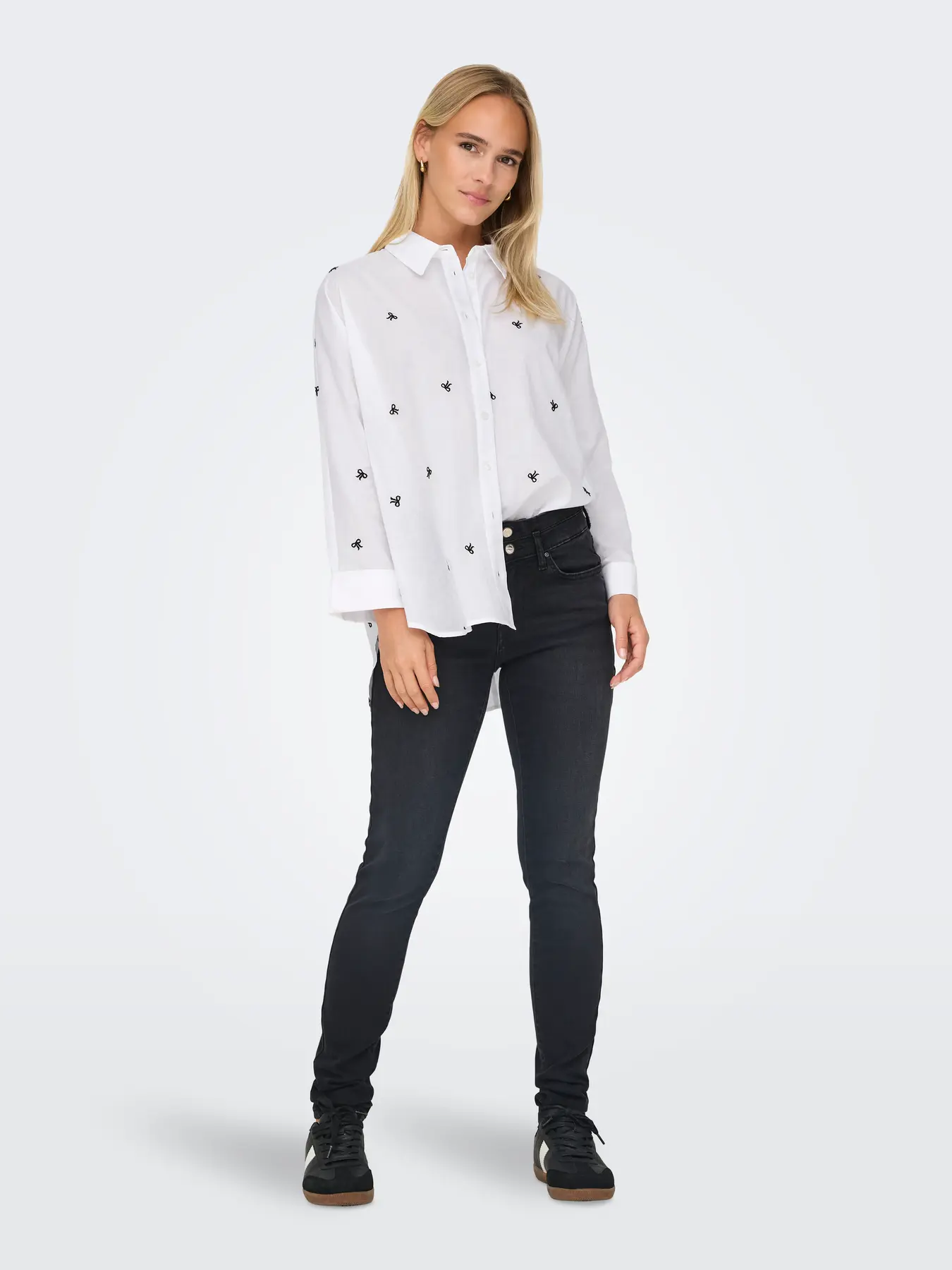 ¡Hazte con la camisa blanca bordada ONLY y destaca con un look impecable y lleno de estilo!