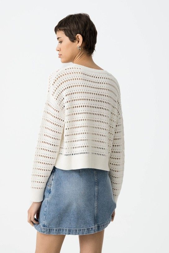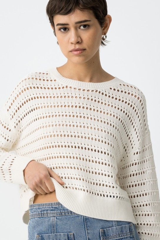 - Renueva tu estilo con este Jersey de punto calado y siéntete fresca y elegante en todo momento.
