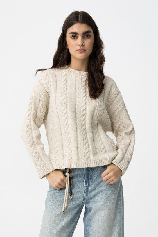 Jersey de punto trenzado beige Tiffosi