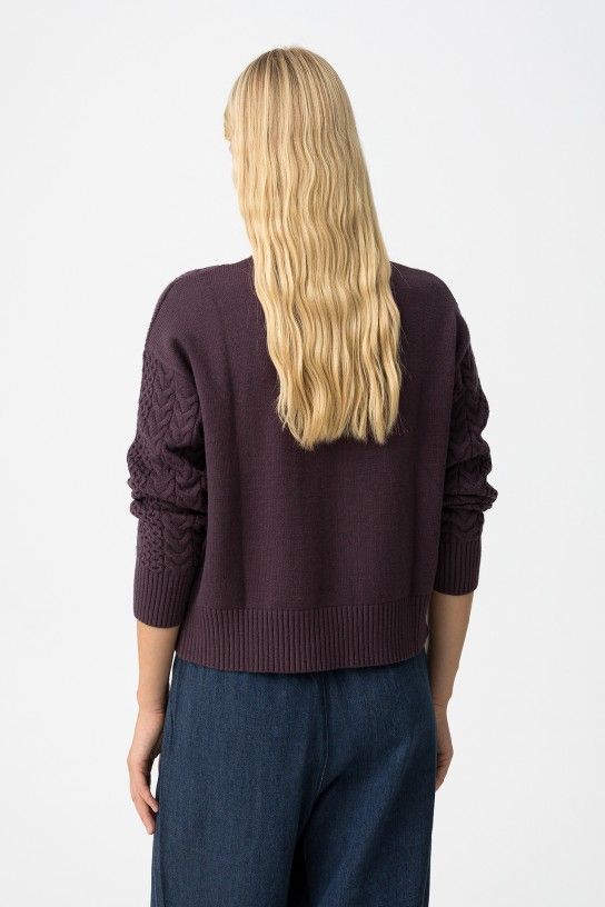 Jersey regular fit de punto trenzado, cuello alto, manga larga y acabados de canalé. 52% VISCOSE 28% POLYESTER 20% POLIAMIDE
