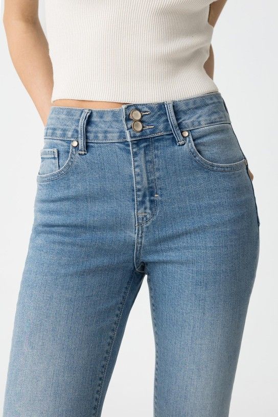 Estos vaqueros no solo son bonitos, también resuelven los típicos problemas que todas hemos tenido con otros vaqueros. Si te has sentido incómoda con pantalones que aprietan demasiado o que ceden hasta parecer otra talla en un solo uso, este modelo está hecho para ti. Su tejido elástico permite moverte sin problema, pero mantiene la forma original sin ensancharse.